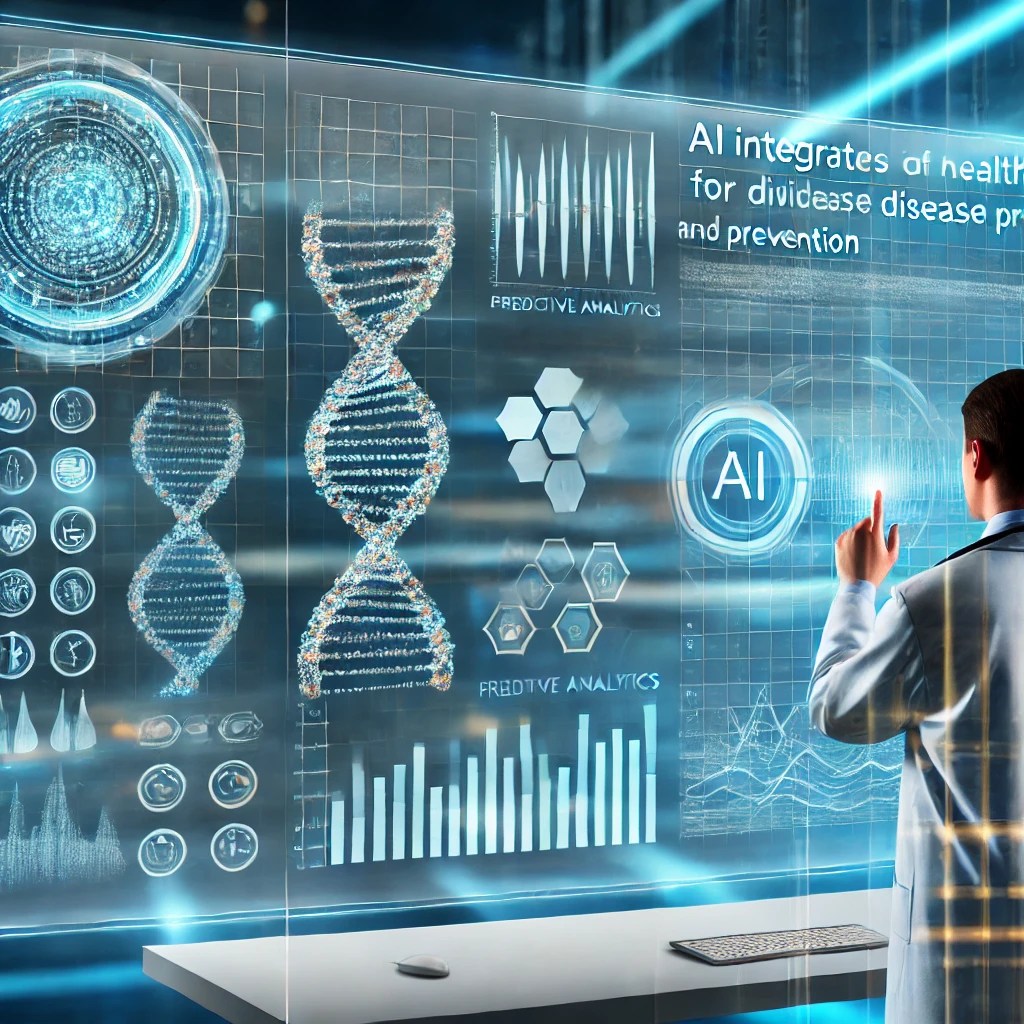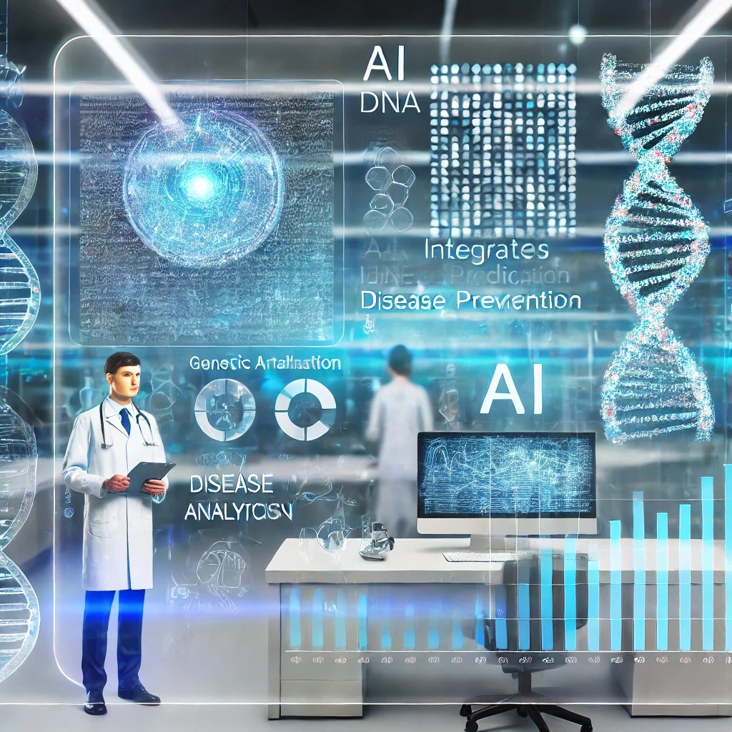 This visual helps illustrate the advanced capabilities of AI in enhancing the precision of healthcare through genetic analysis and preventive strategies.