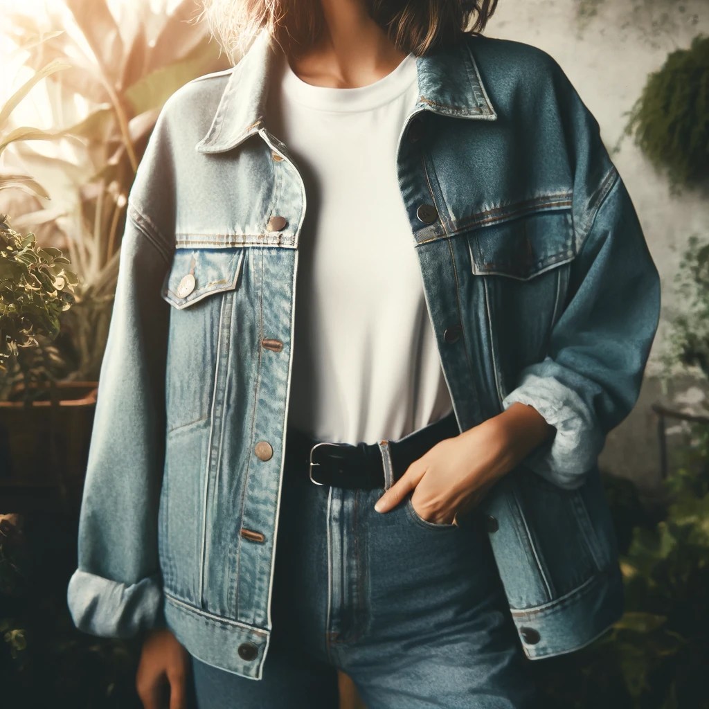 Here’s an illustration of sustainable fashion. With upcycled denim jackets and t-shirts made from sustainable materials, this is a good representation of both environmental and style-conscious fashion.