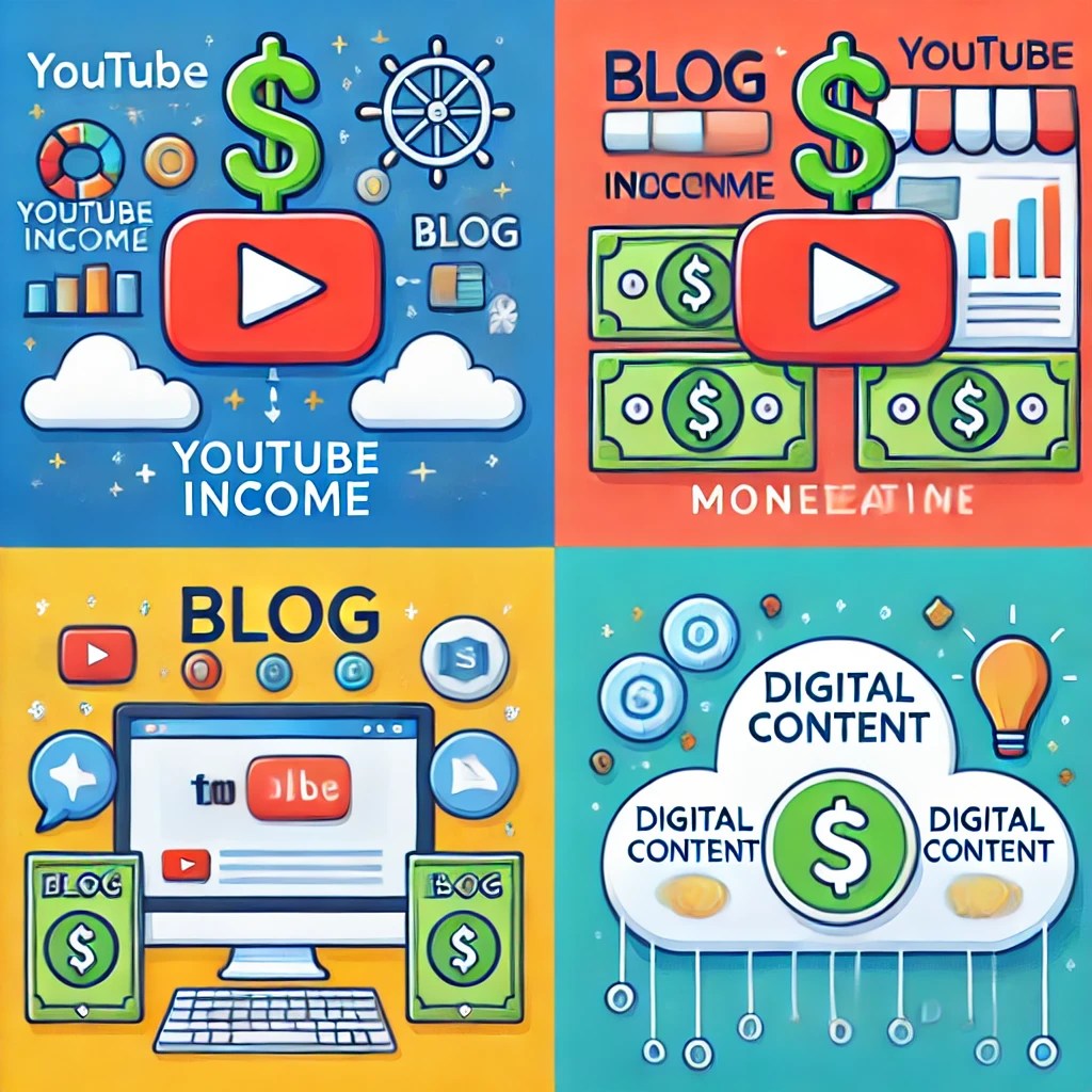Keywords: digital content, YouTube income, blog monetization, e-book publishing