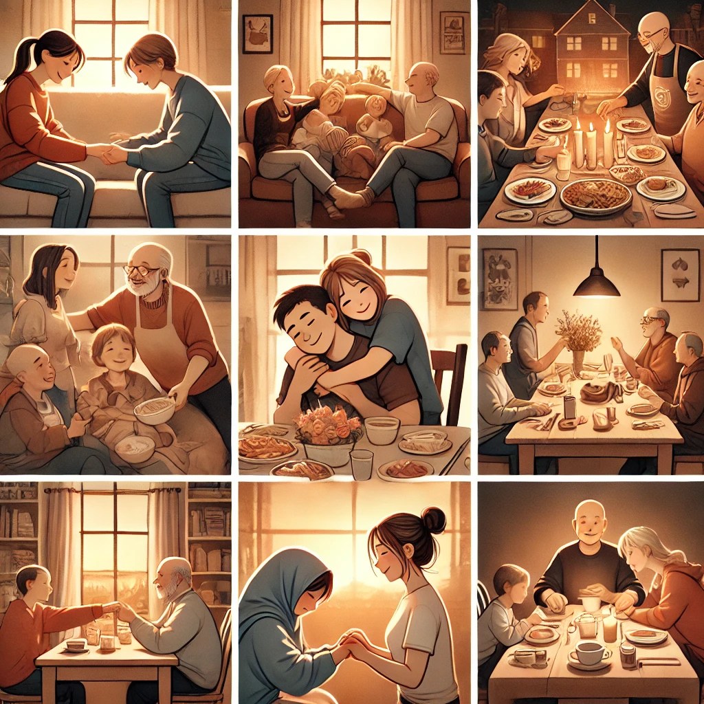 Here’s the illustration depicting the warmth and depth of meaningful connections, showing people sharing simple acts of kindness, joy, and support in various cozy settings.