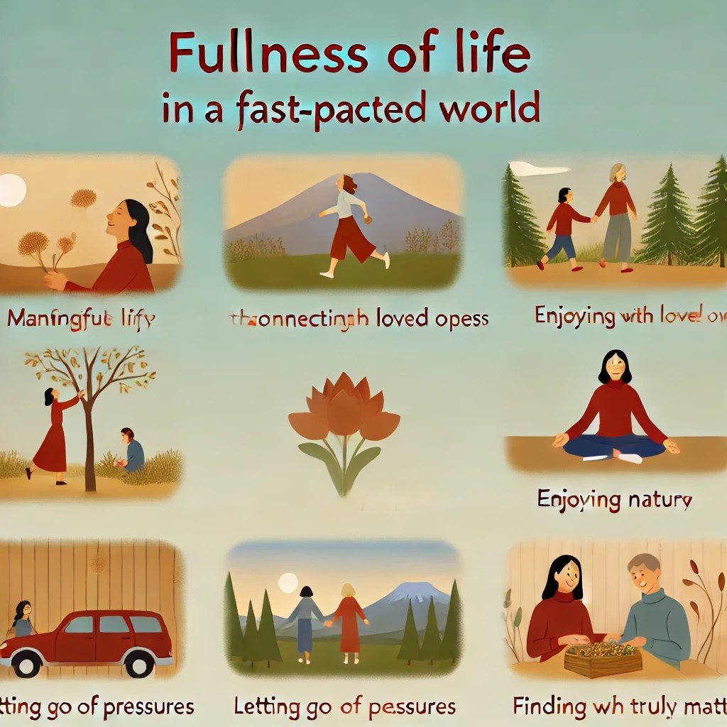 Here’s an illustration that captures the concept of “fullness of life,” which shows people finding joy and meaning through moments of connection, simplicity, and peace in a fast-changing world.
