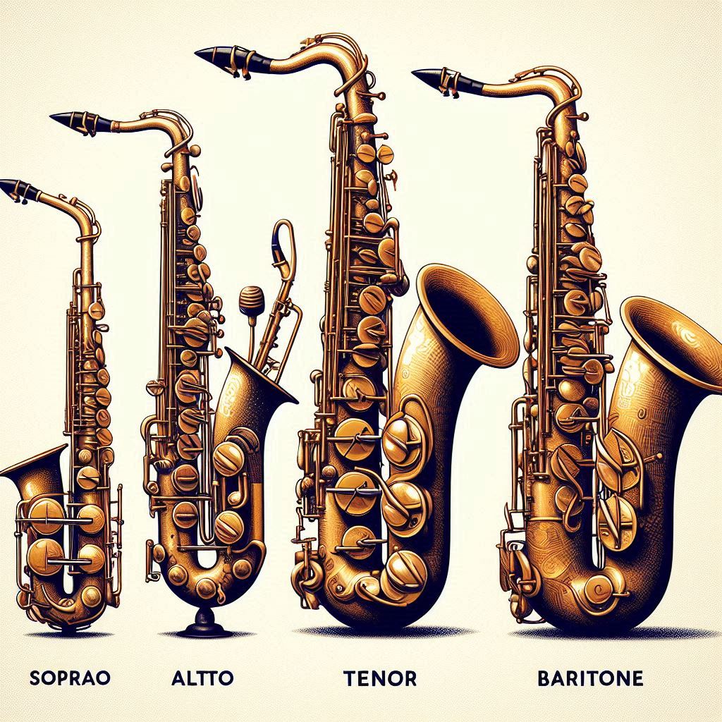 - Saxophone Family: There are four main types—soprano, alto, tenor, and baritone—but the original patent included 14 variations.